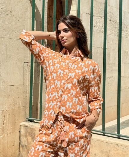 Destacamos los estampados geométricos en tonos tendencia como el naranja vibrante, el coral y los tierras, inspirados en los atardeceres del Mediterráneo. Al trabajar con talla única, nuestras camisas ofrecen un corte oversize relajado que gusta a un amplio rango de clientas. Ofrece en tu boutique moda española de calidad, con botones frontales y mangas ajustables que aportan ese toque chic desenfadado. Somos tu mayorista de confianza para ropa con carácter propio.
