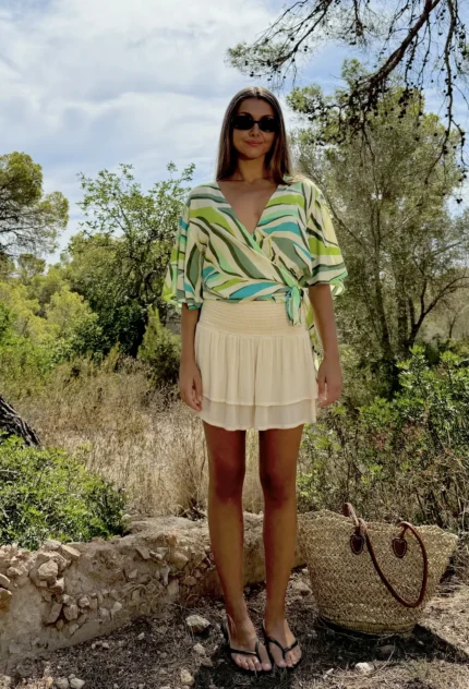 Faldas y Shorts al por Mayor: Comodidad y Tendencia. Proveedores de faldas pareo, minifaldas con volantes y shorts fluidos. Moda joven y fresca con cintura elástica para un ajuste perfecto en talla única. Diseño balear para tiendas multimarca.