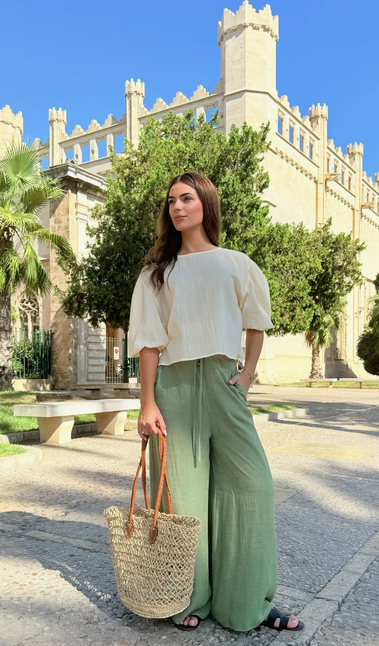 Blusa con mangas globo. Diseñado en Mallorca fabricado en India.
