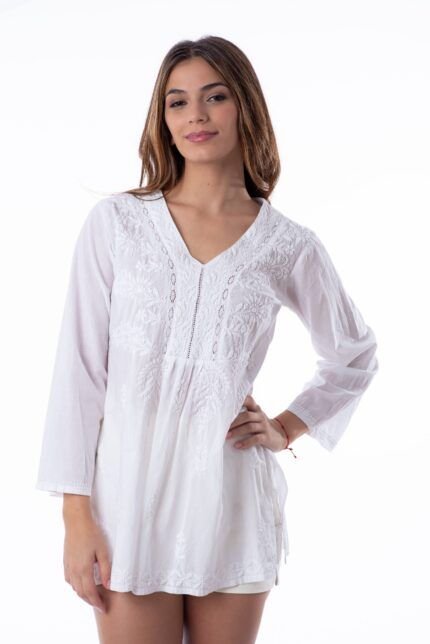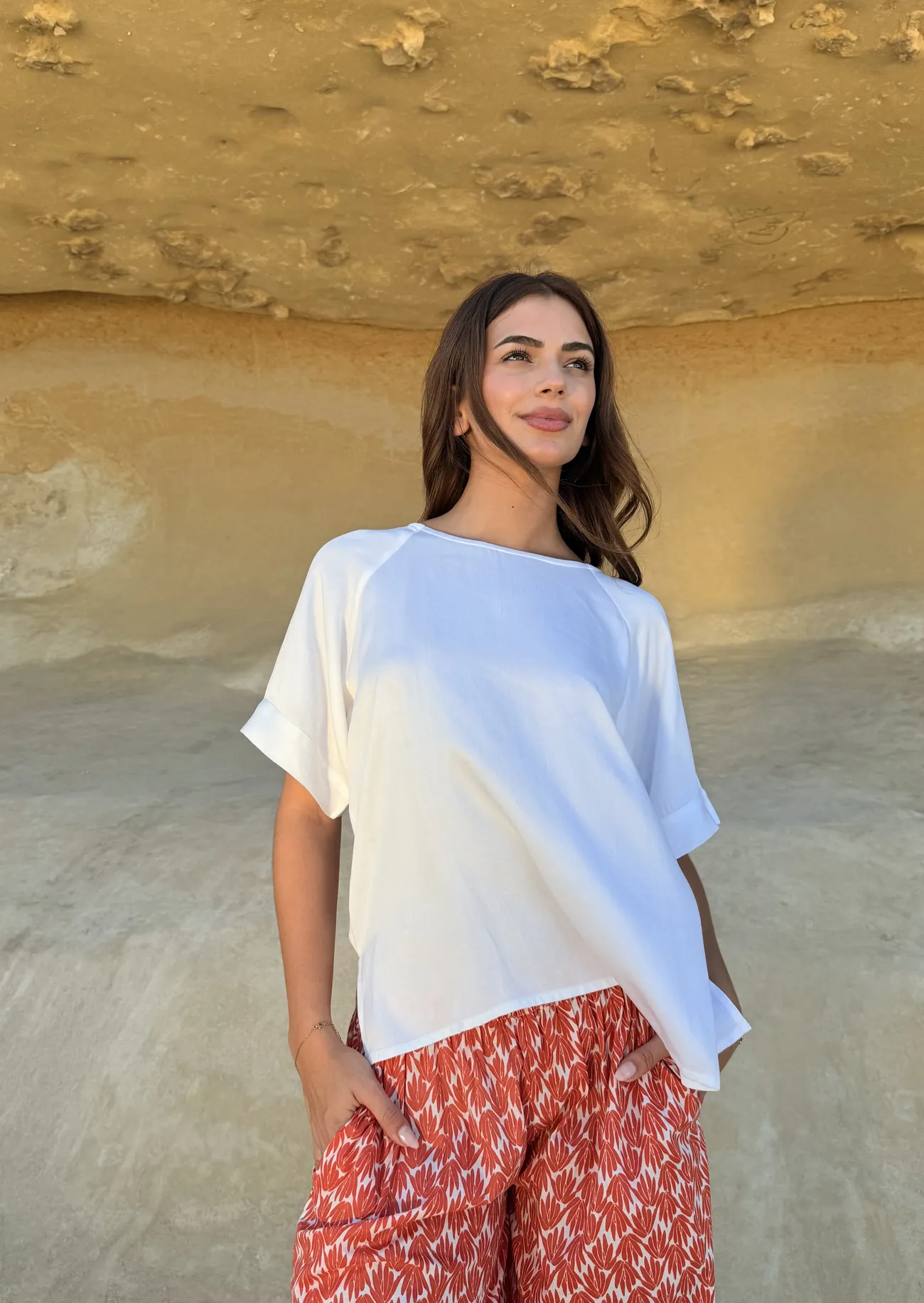 Blusa mangas raglan corta de diseño moderno, clásico y versátil. Diseñada en Mallorca fabricada en India. Composición 100% Viscosa Satén