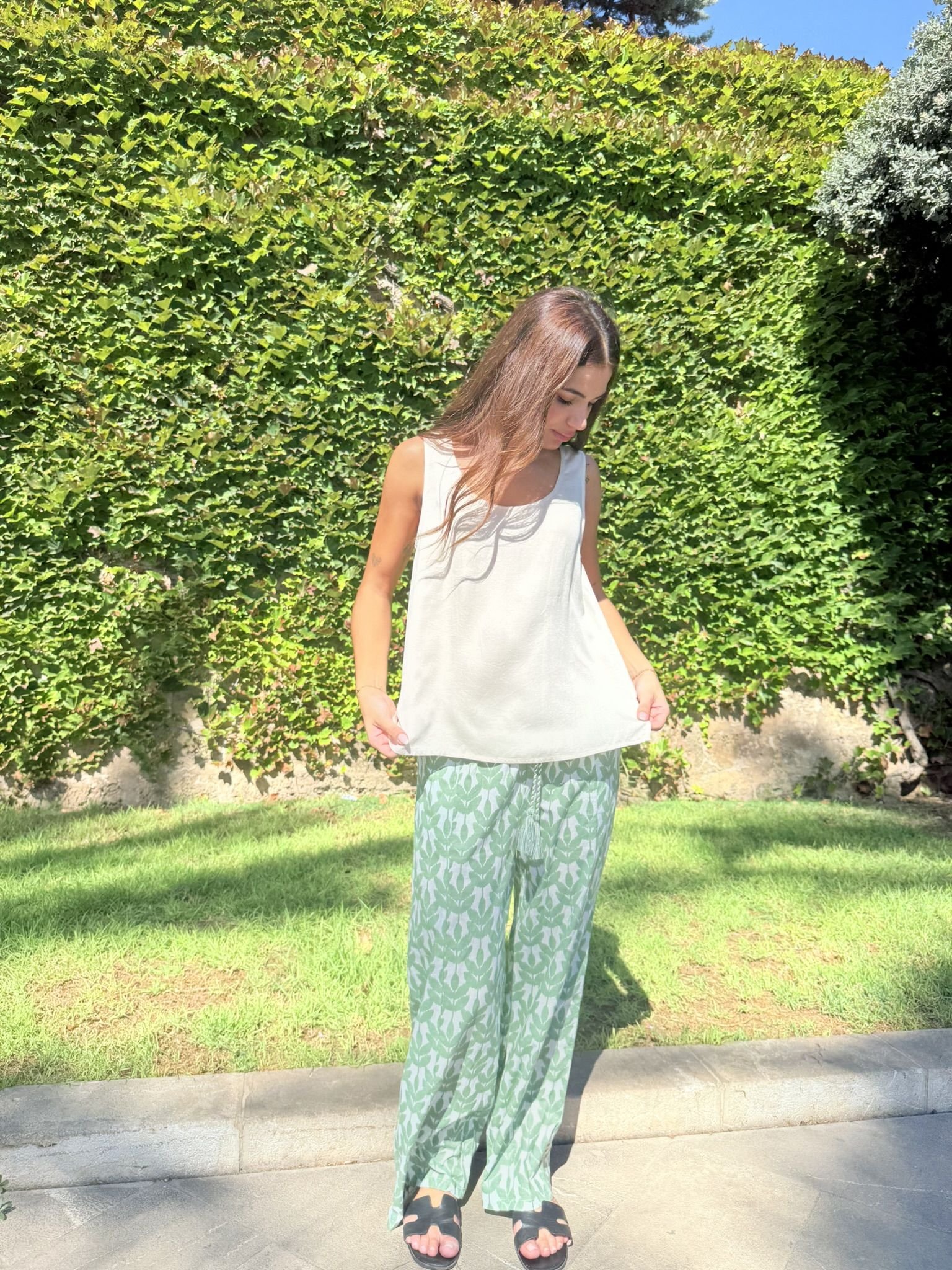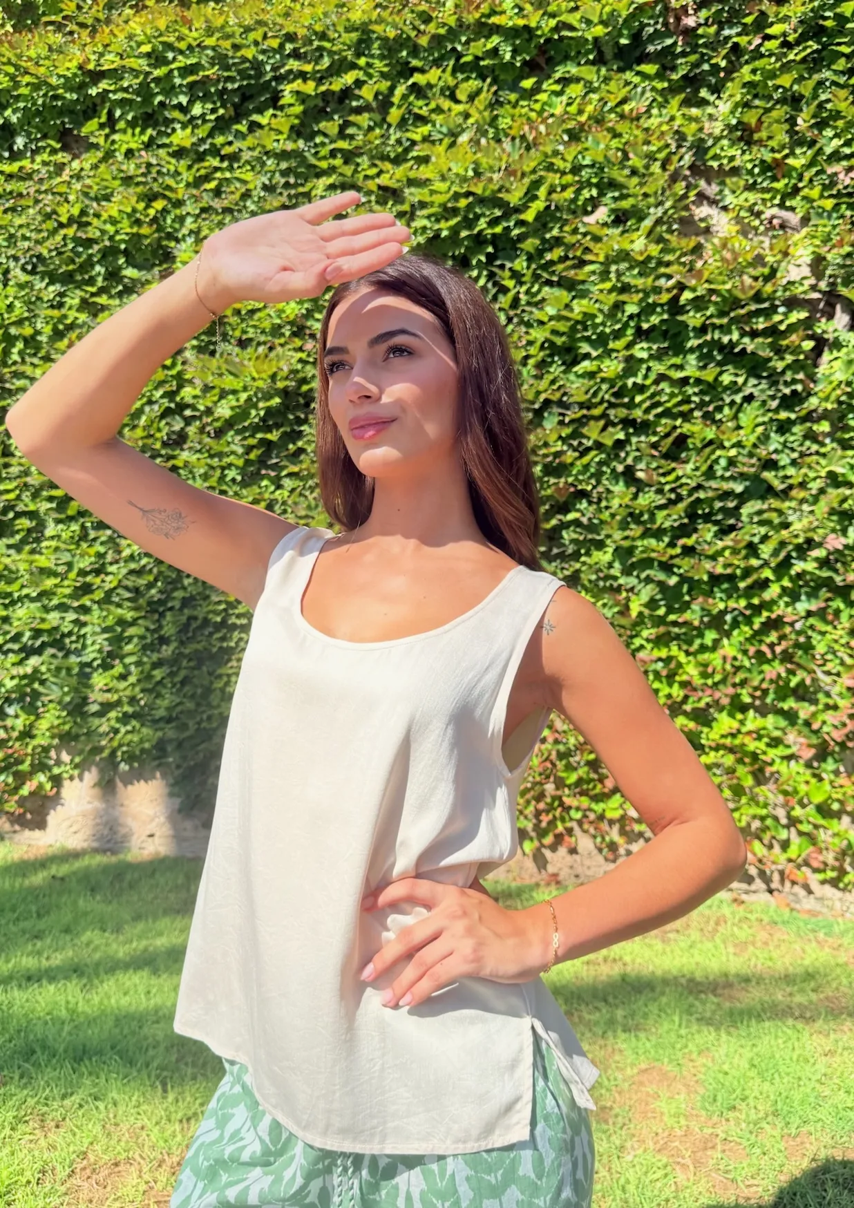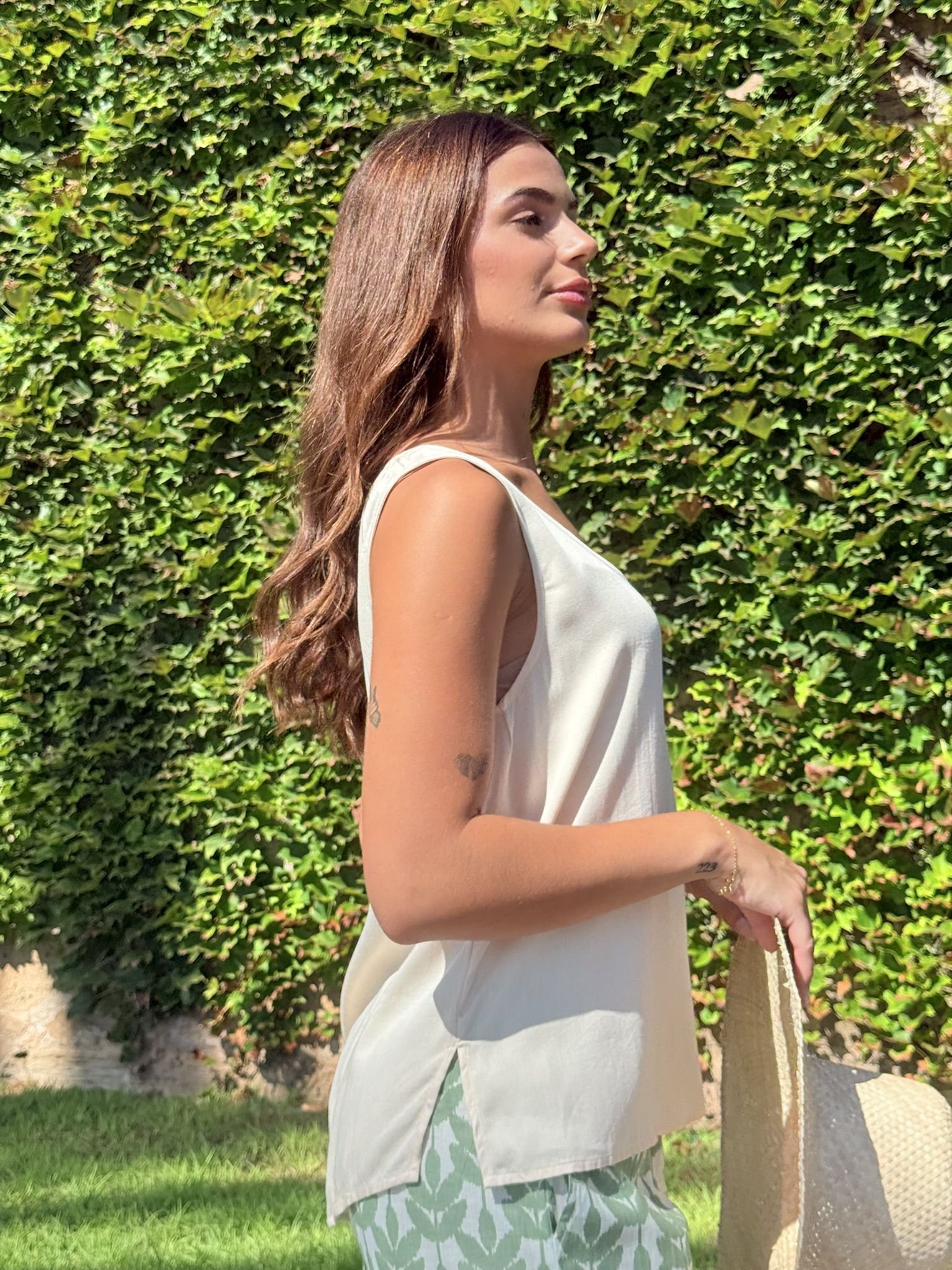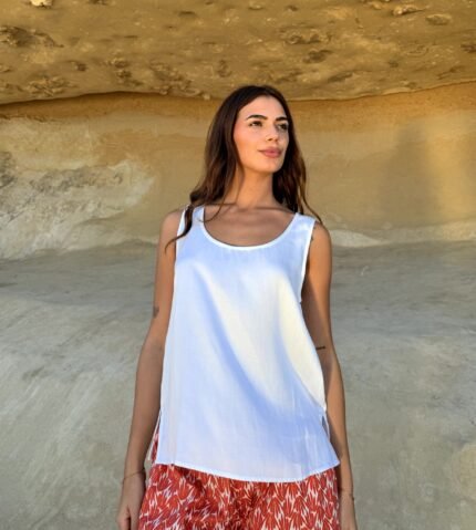 Blusa clásica sin mangas. De calce holgado escote redondo. Un básico infaltable. Diseñado en Mallorca fabricado en India. Composición 100% Viscosa Satén