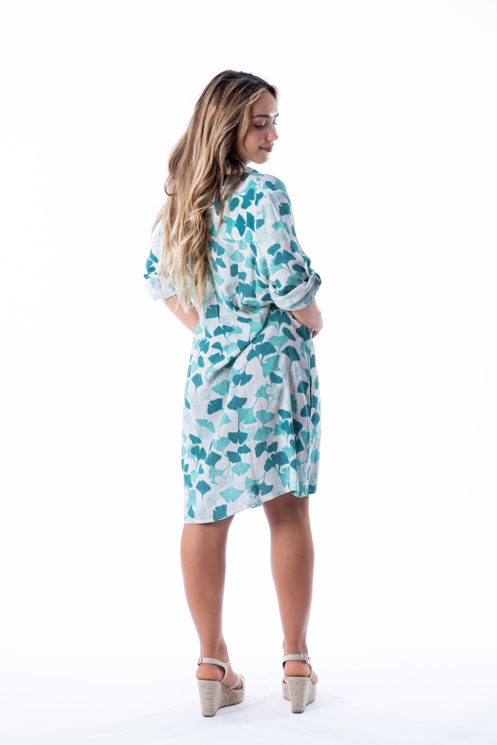Vestido camisero midi abotonado y con trabilla recoge manga. Confeccionado en diversos tejidos ligeros, muy suaves y transpirables. La silueta es sencilla, relajada y fresca. Para usar solo, como sobre camisa o combinarlo con tejanos.