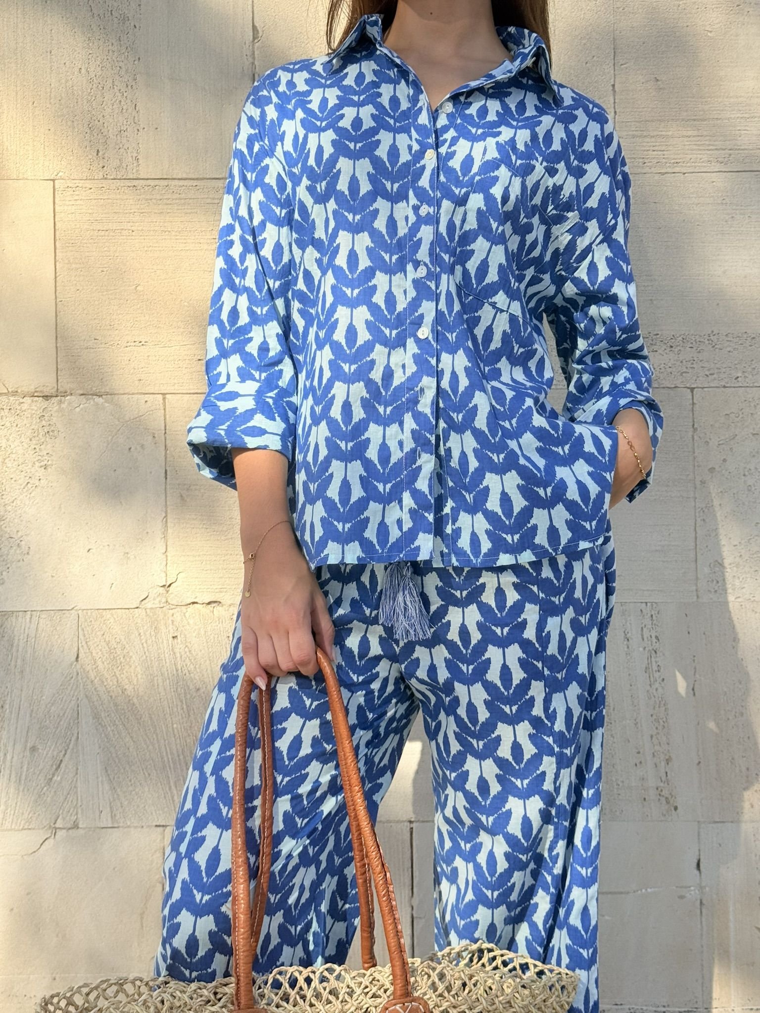 Camisa oversize mangas 3/4 de diseño moderno que se adapta tanto a un look mas informal como a una ocasión formal. Fresca y vérsatil. Diseñada en Mallorca fabricada en India. Composición 100% Algodón.