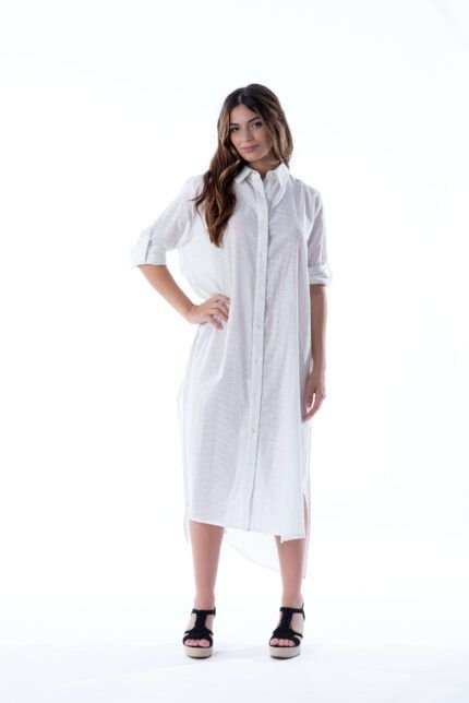 Camisa oversize mangas 3/4 de diseño moderno que se adapta tanto a un look mas informal como a una ocasión formal. Fresca y vérsatil. Diseñada en Mallorca fabricada en India. Composición 100% Algodón.