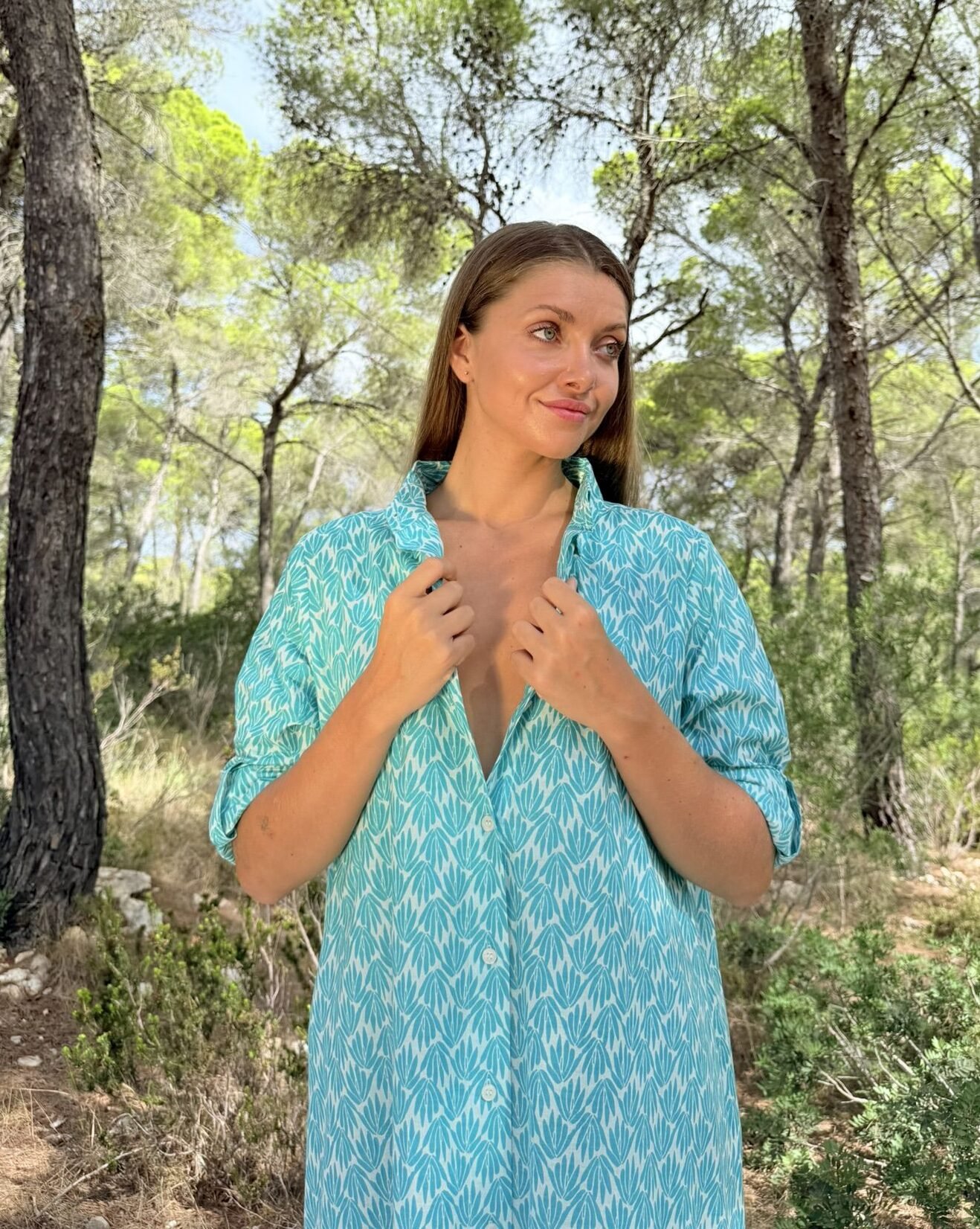 Vestido camisero largo de silueta fluida. Confeccionado en diversos tejidos nobles, muy suaves y transpirables. Las mangas largas con trabilla para recoger lo que le aporta versatilidad para los calurosos días de verano. Diseñado en Mallorca fabricado en India. Composición 100% Algodón