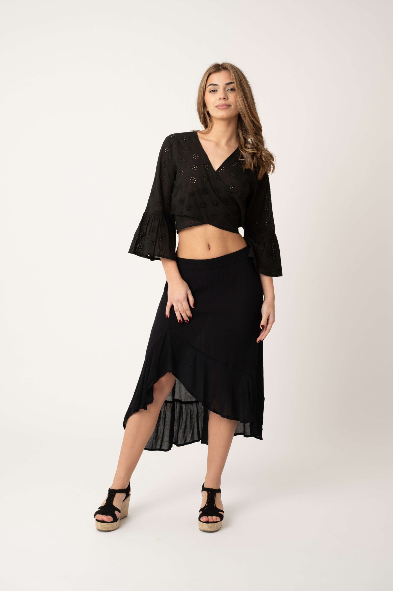 MALENA es nuestra falda de corte irregular y largo midi. Con cintura elastizada y totalmente regulable para conseguir el ajuste perfecto.