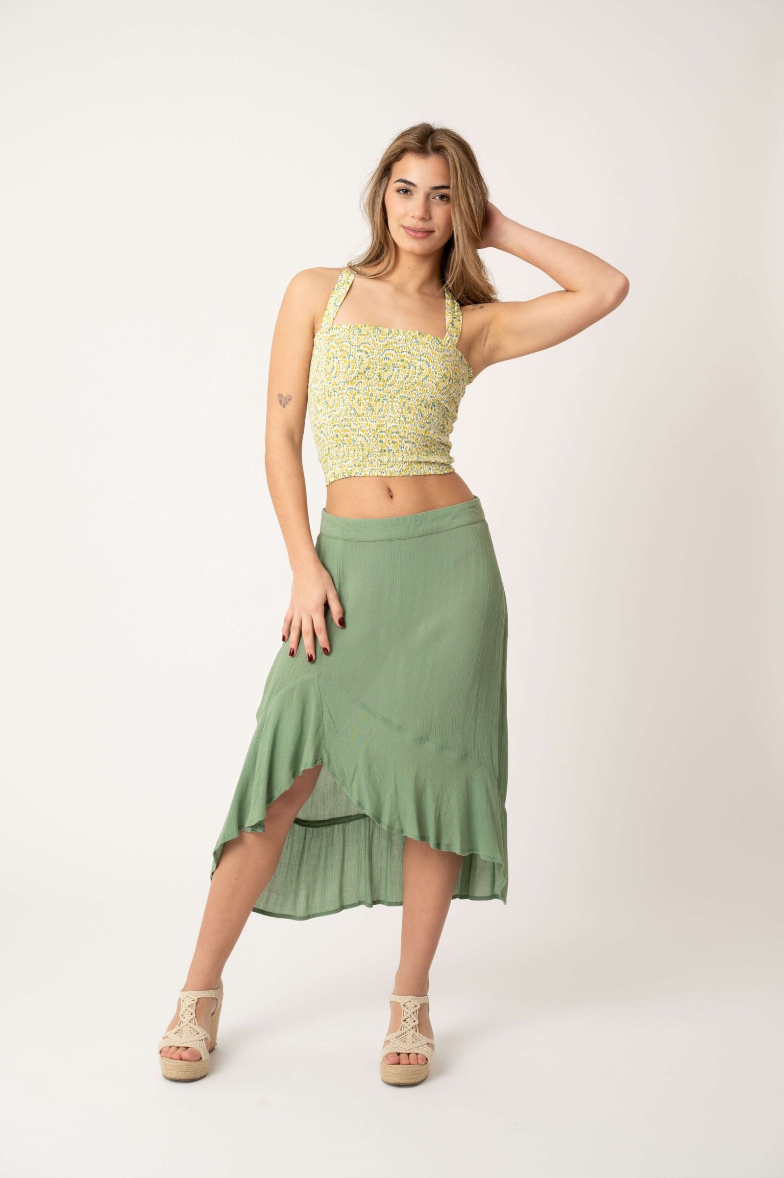 MALENA es nuestra falda de corte irregular y largo midi. Con cintura elastizada y totalmente regulable para conseguir el ajuste perfecto.
