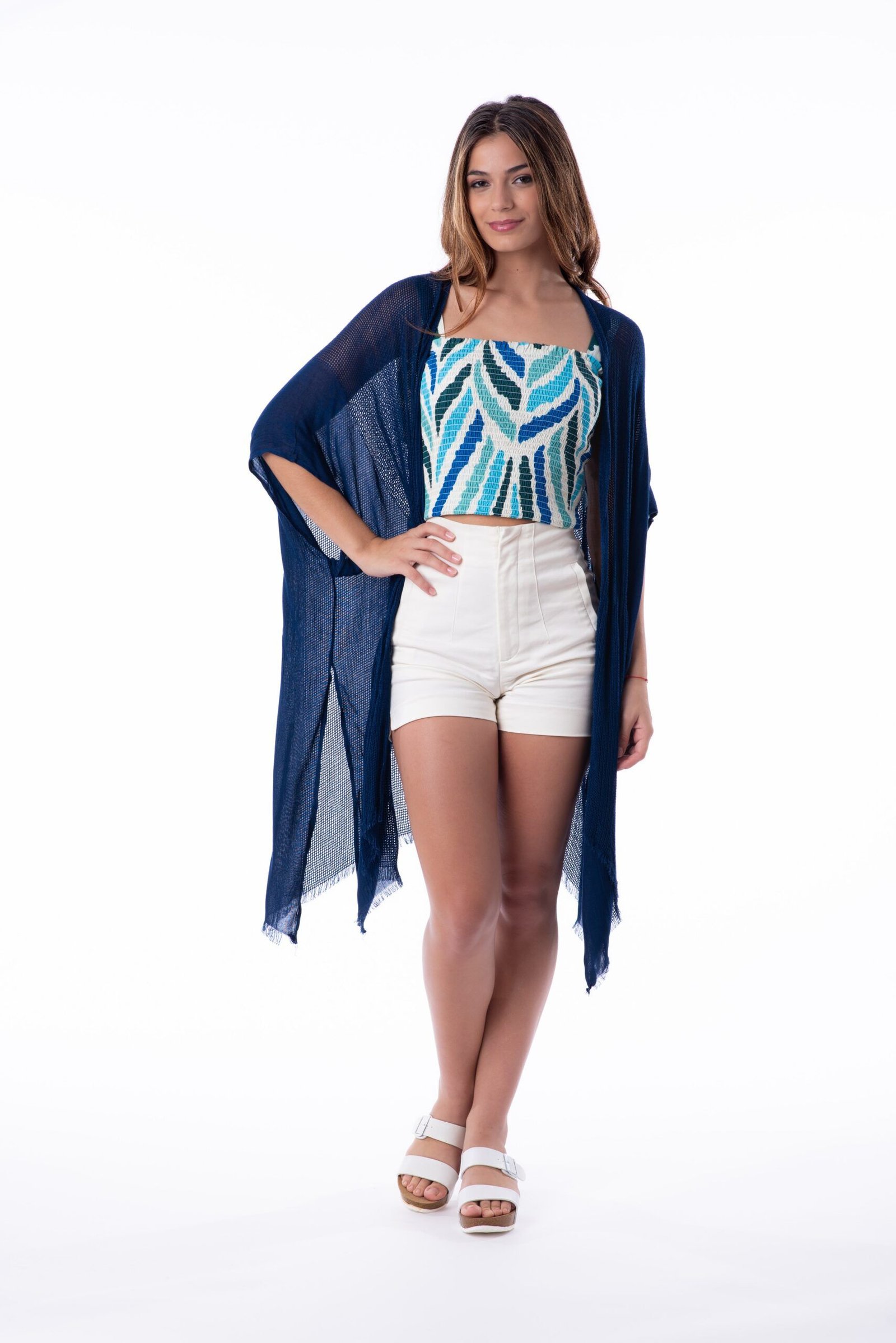 Kimono tejido telar. Midi. Sin manga. Disponible en colores sólido Composición 100% Cotton.