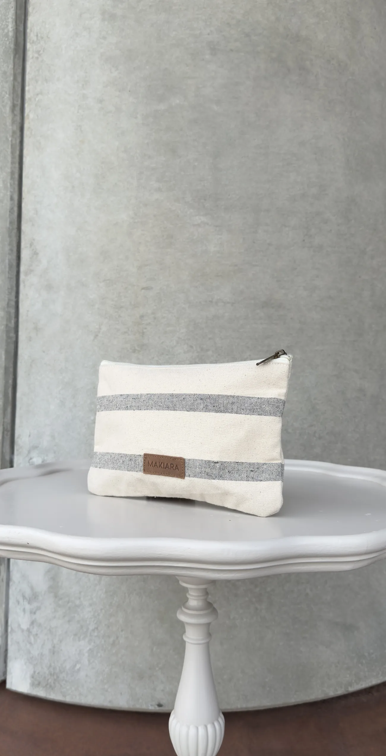 Neceser de estilo minimalista y rústico, confeccionado en telas de canvas y jute. Textura ligeramente rugosa de carácter artesanal y eco-friendly, ideal para quienes buscan accesorios con un aire bohemio y sostenible. Medidas alto 16 cm y ancho 24 cm.