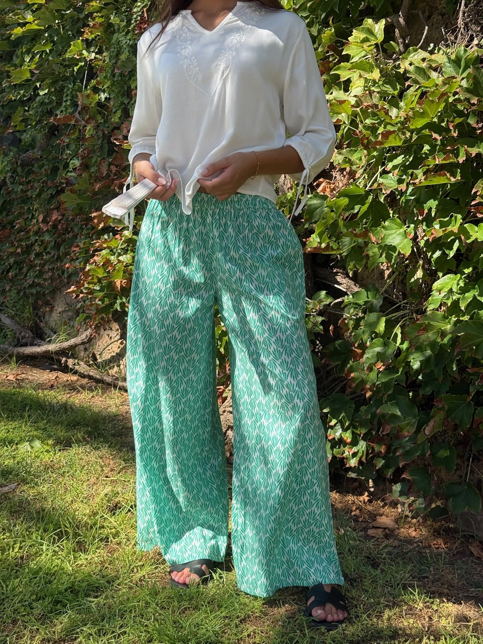 El Pantalón Angelina Legui Green se erige como pieza clave de nuestra colección primavera verano. Su estampado Legui, con ese vibrante toque green de tendencia, evoca la frescura y originalidad que tus clientas buscarán para sus looks más espontáneos. Es una prenda que encapsula la esencia de un estilo desenfadado pero sofisticado, ideal