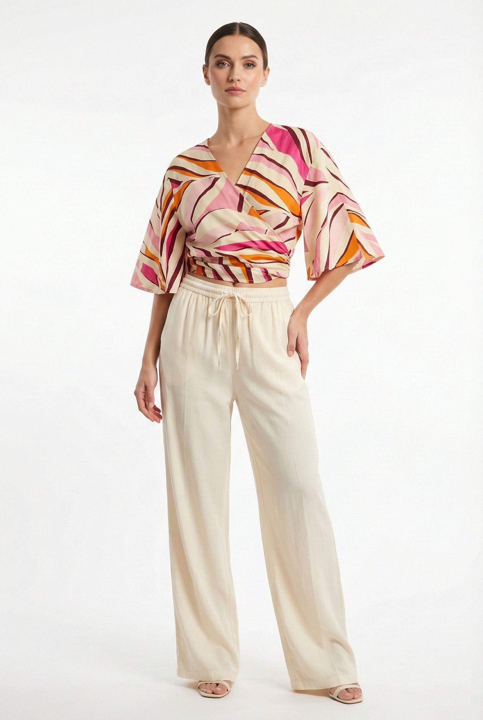Straight trousers pantalón largo tiro medio, pernera recta y ancha, cintura elástica regulable.
