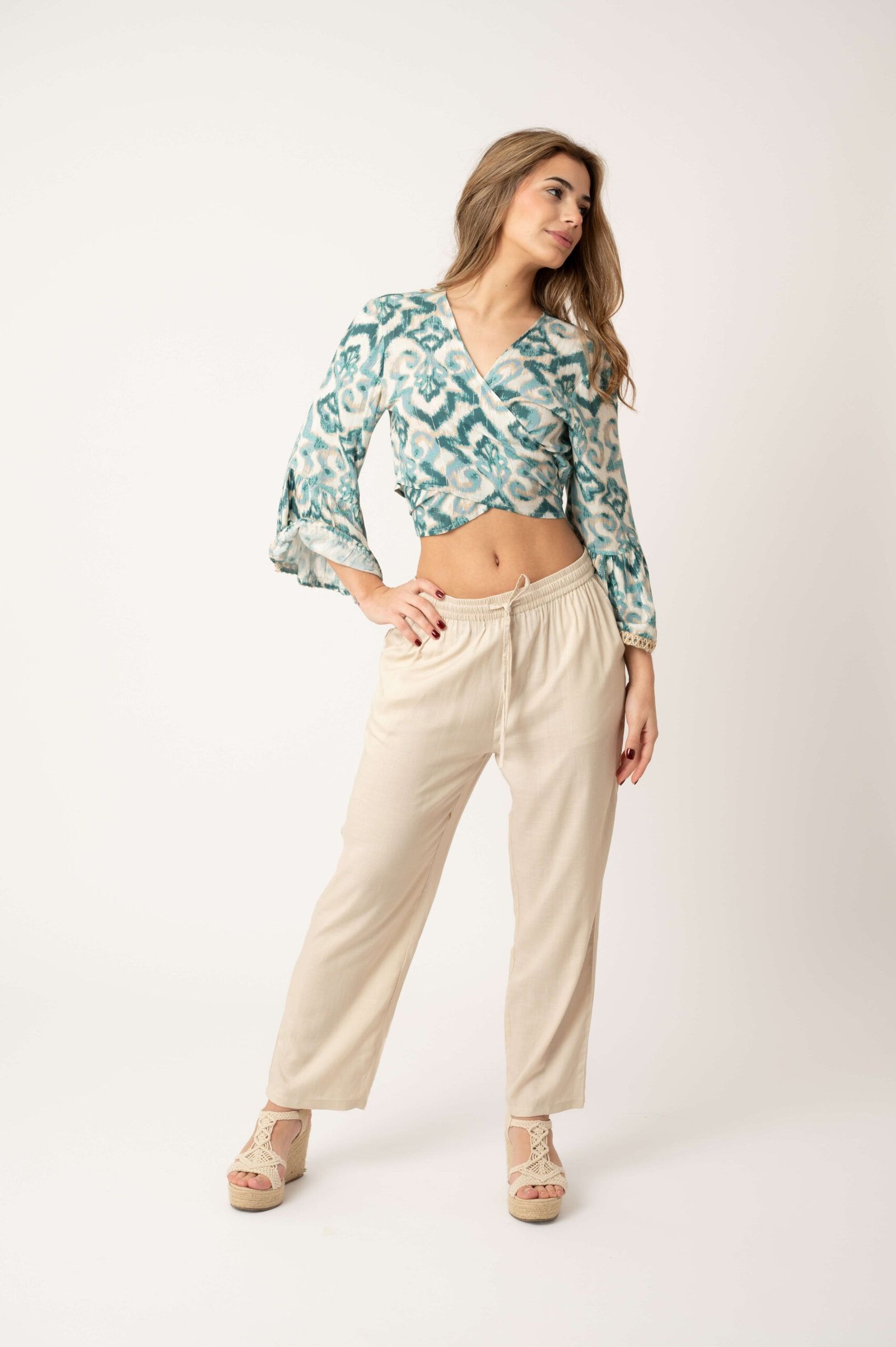 Los pantalones de diseño atemporal son ideales para llevarlos en el día a día o sobre tu bañador favorito. Con una camisa oversize o un top. Tienen cintura de goma elástica, piernas largas rectas y bolsillos laterales