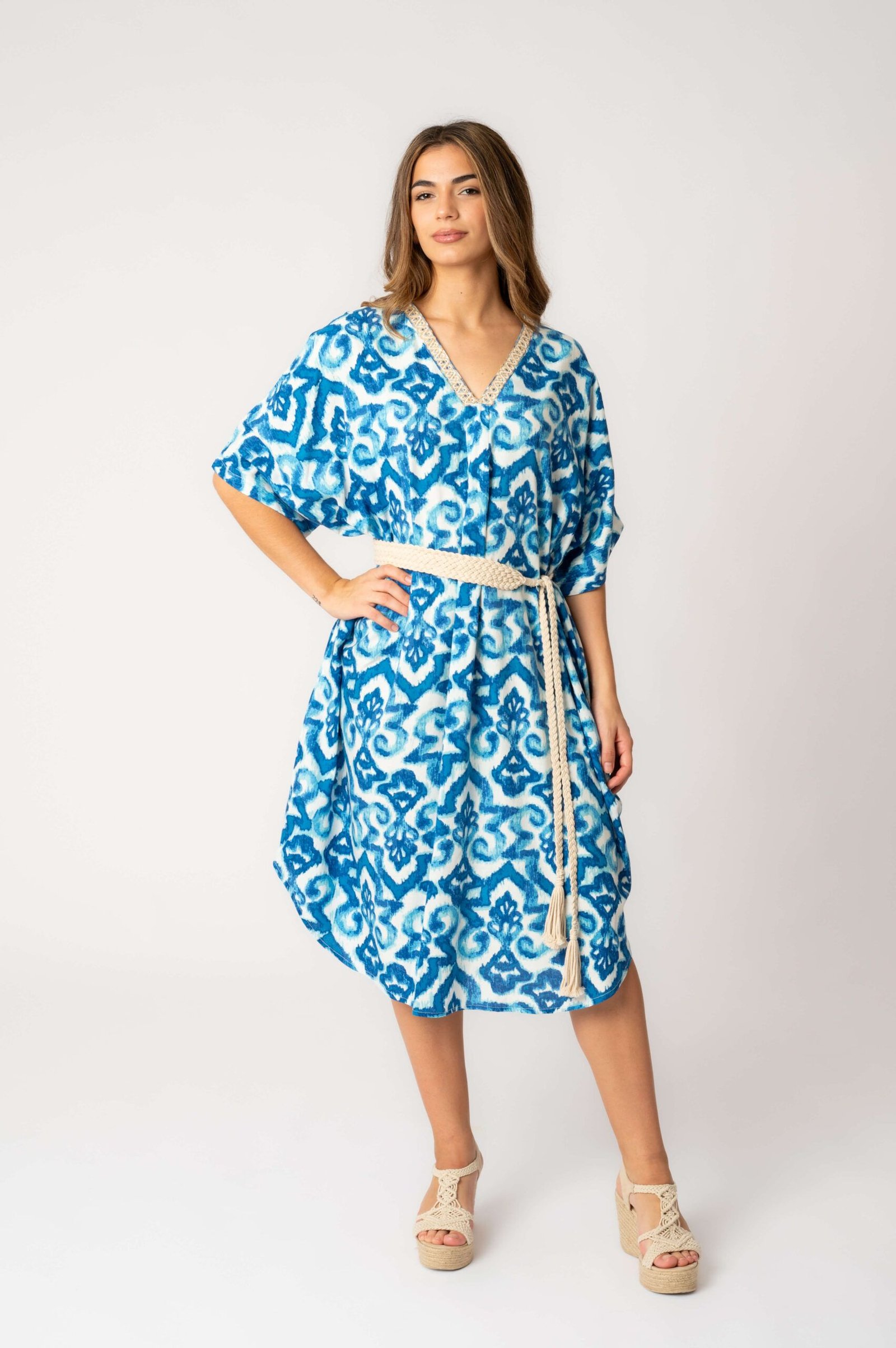 Este vestido fluido garantiza un confort excepcional y una versatilidad sin igual, elementos clave en la moda femenina mayorista actual. A diferencia de un vestido largo estampado más específico, Athenea Blue transita con sorprendente facilidad de un estilo relajado diurno a una propuesta chic para la tarde-noche o eventos veraniegos. Esta capacidad de adaptación lo convierte en una prenda imprescindible que impulsa la compra por su practicidad y diseño.