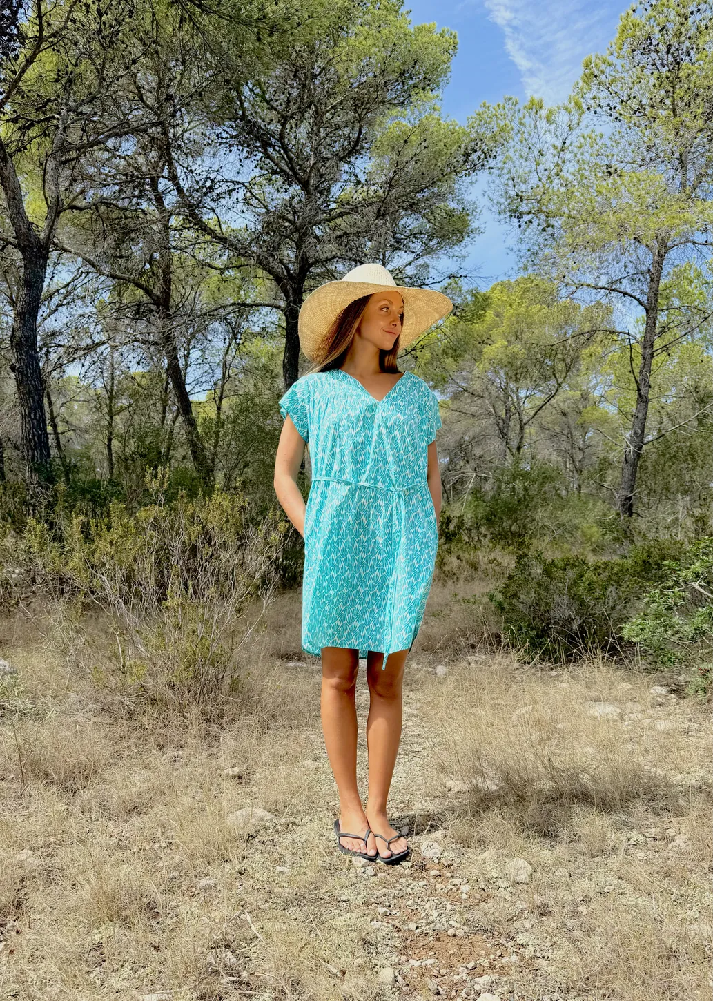 Este Vestido Corto Fresh Green, pieza clave para la colección primavera verano, cautiva con su silueta de corte amplio y movimiento envolvente. Confeccionado en algodón 100%, este vestido fluido presenta mangas cortas, un favorecedor escote en ‘V’ y bajo irregular que añade dinamismo. Sus bolsillos laterales y cinturón