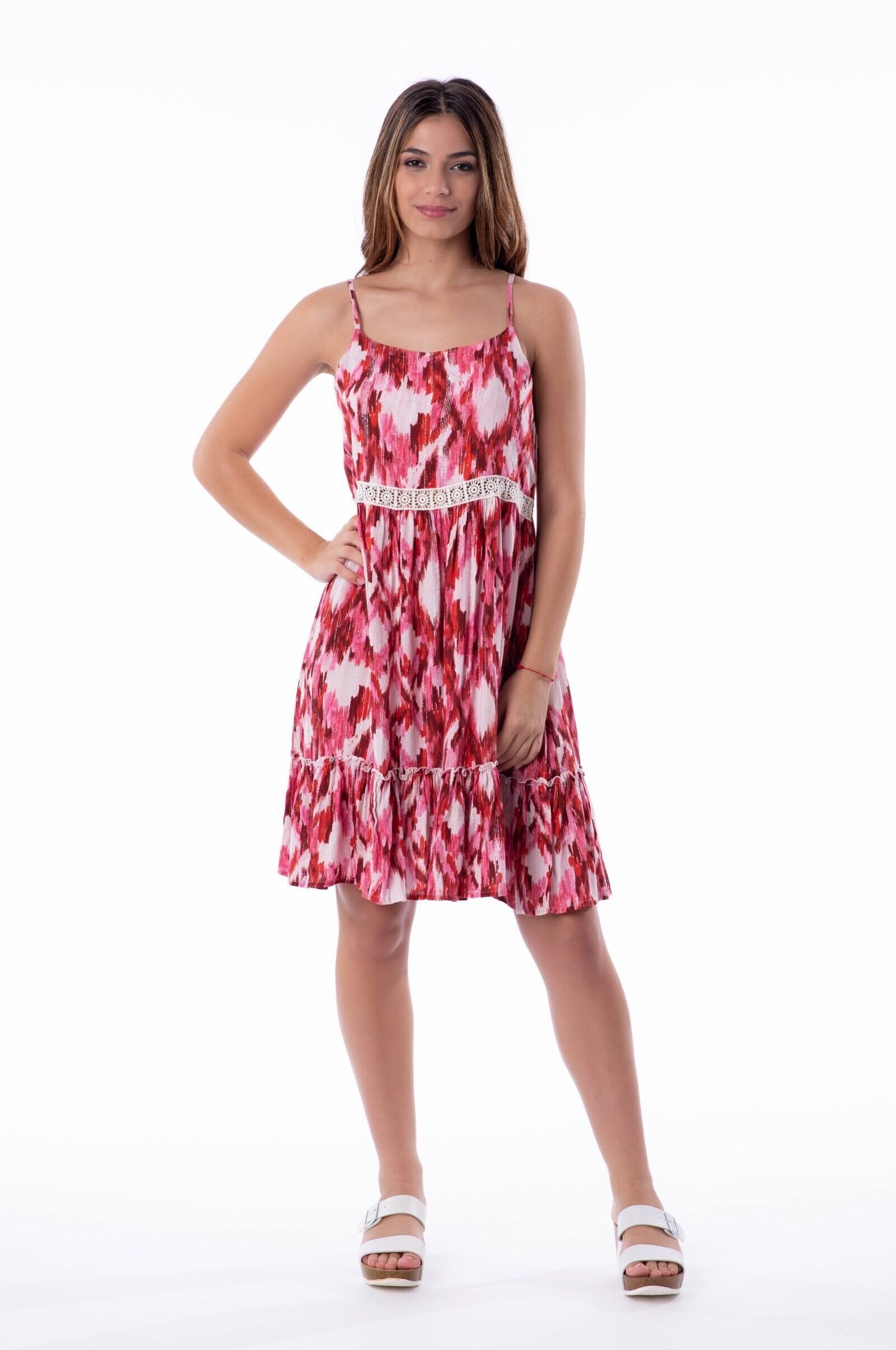 Para su nueva exhibición de colección primavera verano, el Vestido Corto Helen Red emerge como una pieza que captura la esencia del estilo boho chic. Confeccionado en una ligera viscosa lurex, este vestido fluido destaca por su vibrante estampado Ikat en tonalidades rojas. Su corte corto y silueta desenfadada ofrecen una comodidad inigualable y un aire juvenil. La
