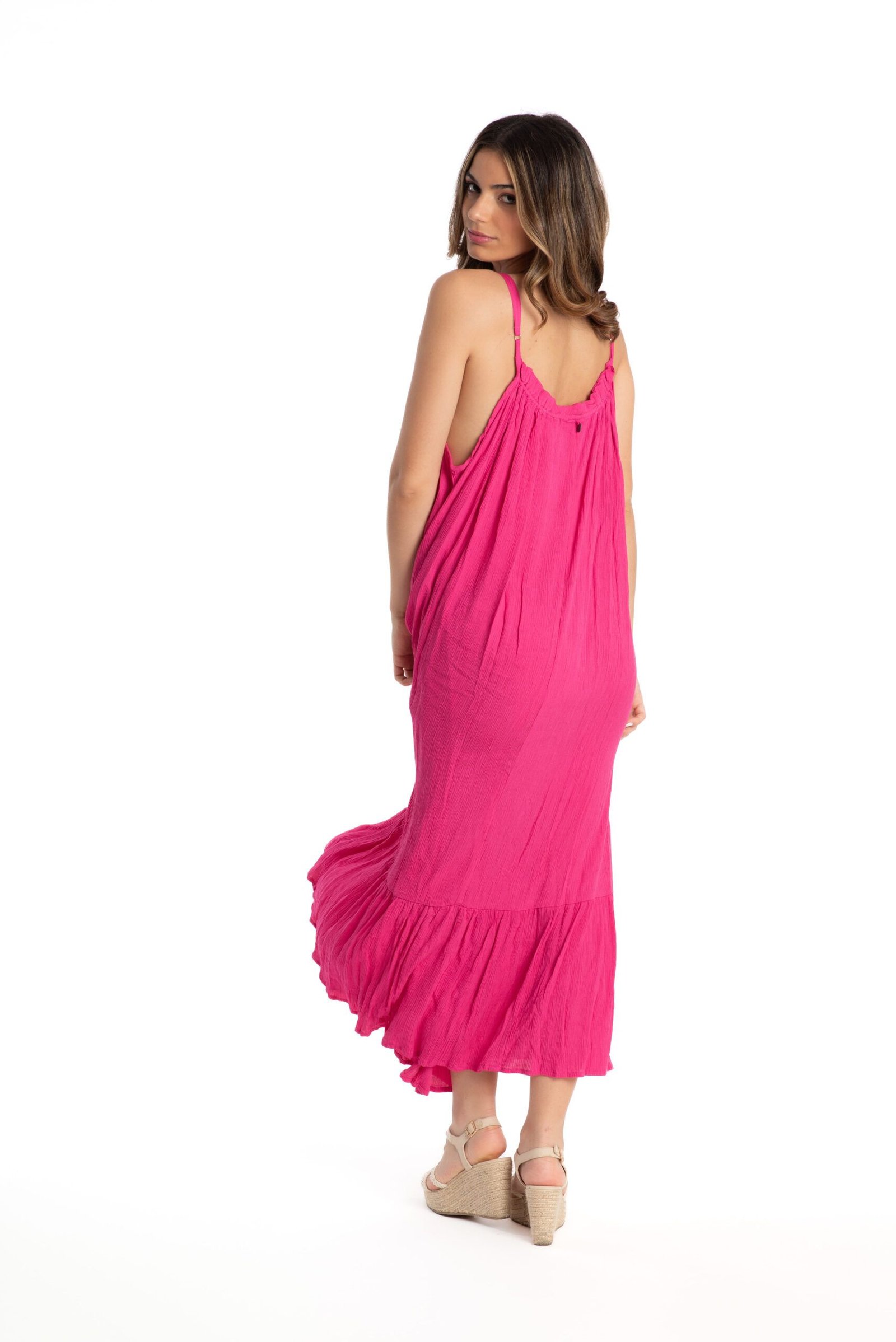 El maxivestido Africa es una sinfonía relajante. Con tirantes ajustables, bajo con volantes y detalle de embellishment en el cuello ofrece una silueta muy relajada que lo convierten en el básico perfecto para el día a día en verano.