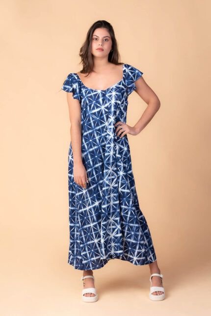El maxivestido Africa es una sinfonía relajante. Con tirantes ajustables, bajo con volantes y detalle de embellishment en el cuello ofrece una silueta muy relajada que lo convierten en el básico perfecto para el día a día en verano.