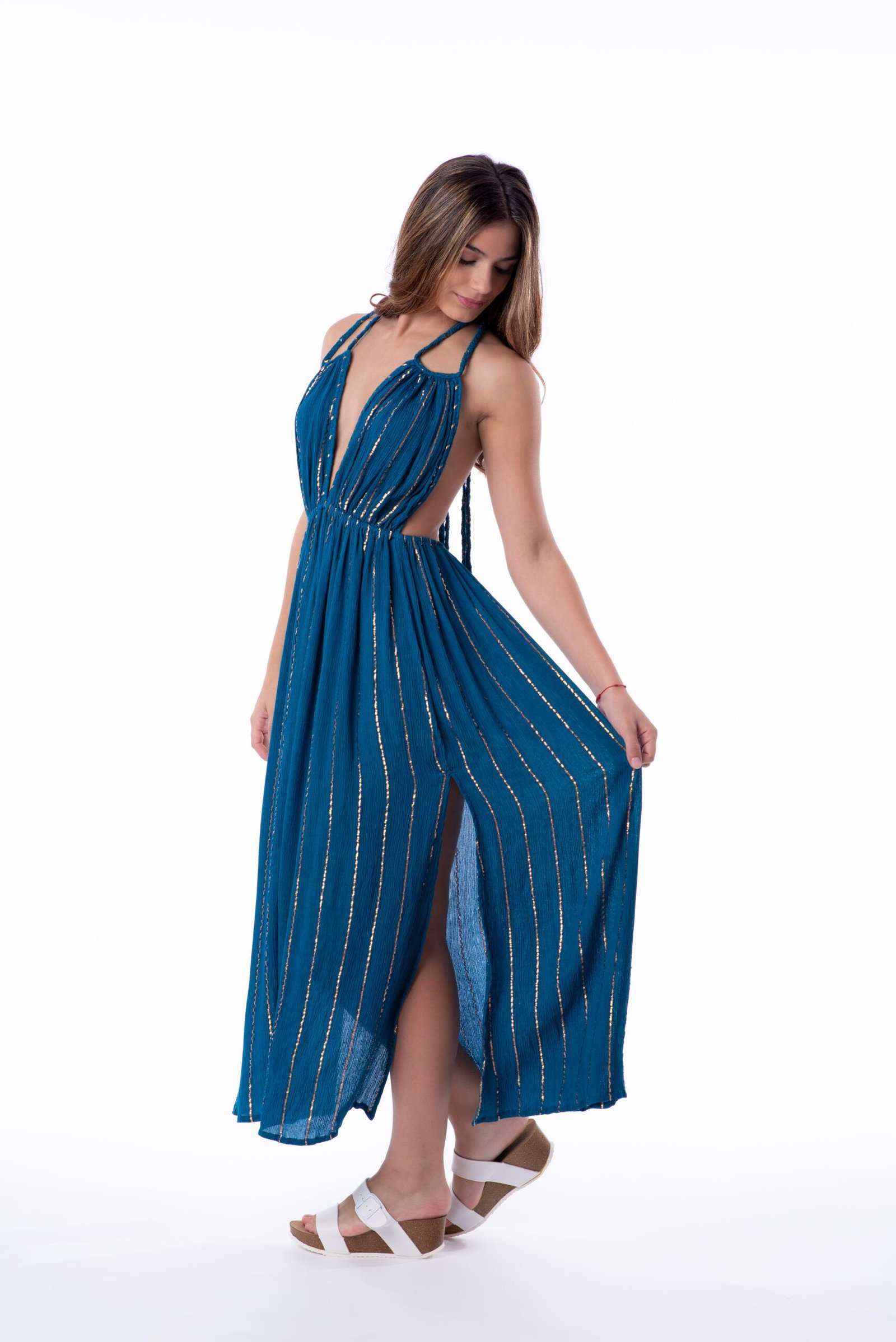 Vestido Largo Indira Blue Gold