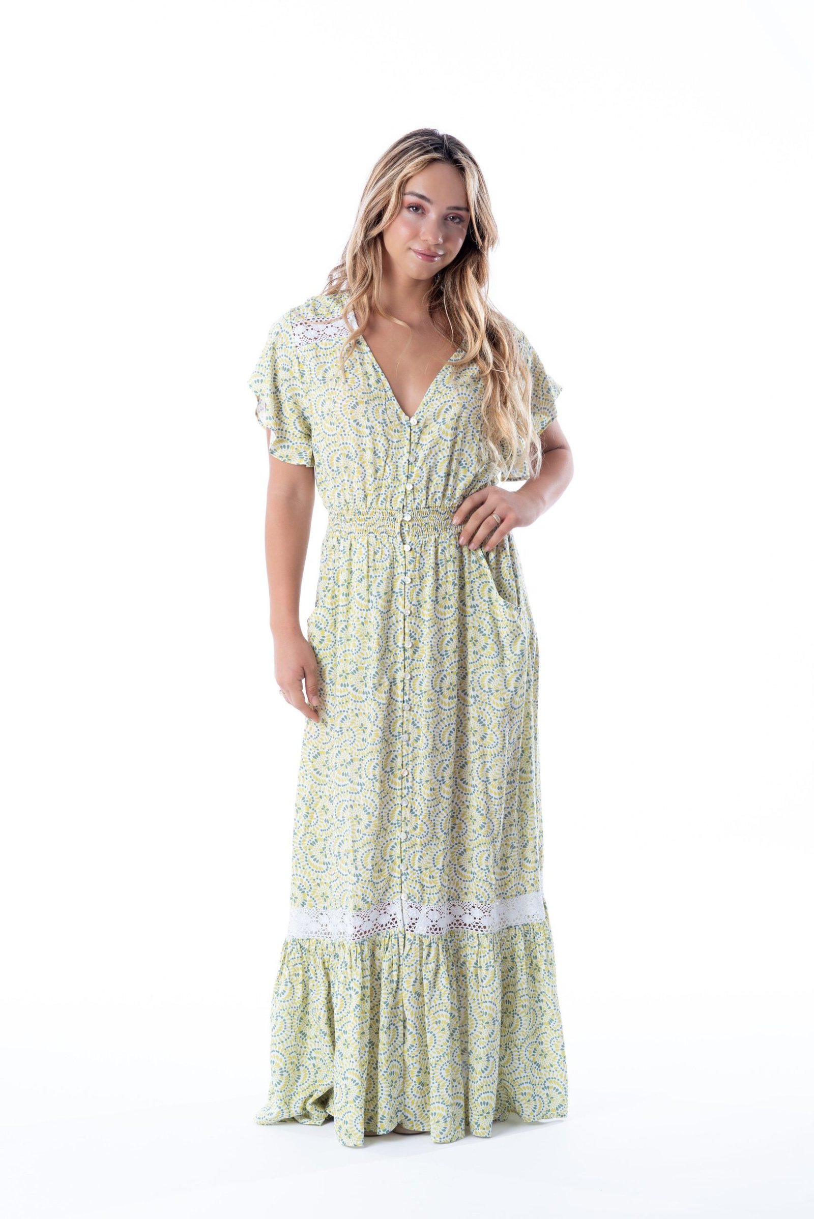 Enamórate del encanto del Vestido Largo JUANITA. Sus exquisitos detalles en los hombros y los volantes destilan elegancia. Confeccionado en viscosa, se ciñe con gracia para un look deslumbrante. La cintura elástica garantiza un ajuste cómodo, mientras que los discretos bolsillos añaden comodidad. Perfecto para cualquier ocasión, este vestido combina estilo y funcionalidad sin esfuerzo.