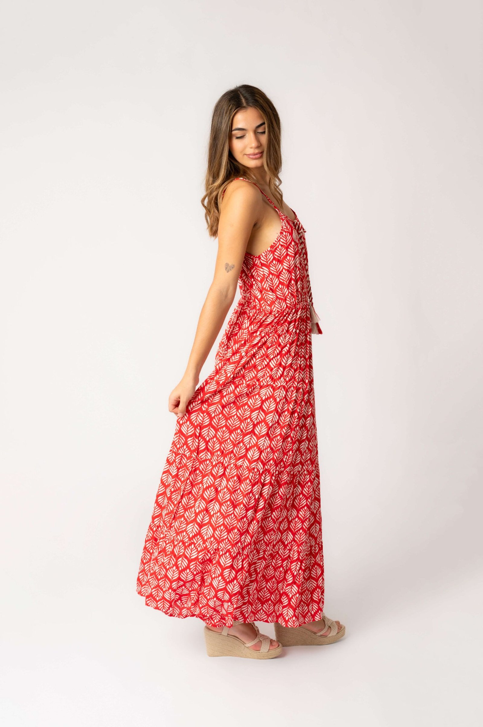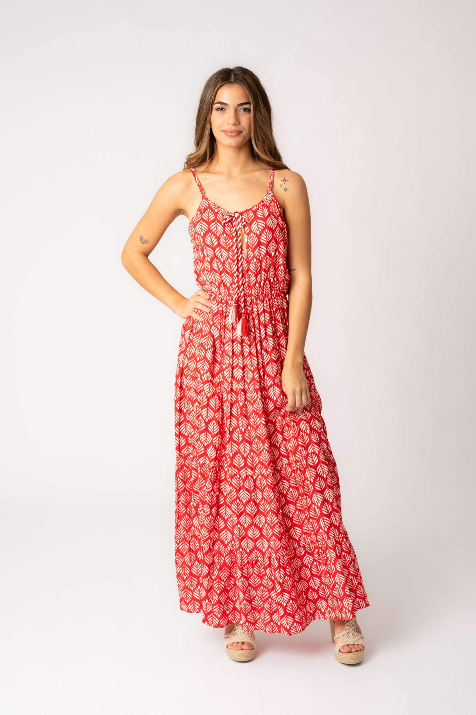 Vestido Largo Marcia Coral Leaf