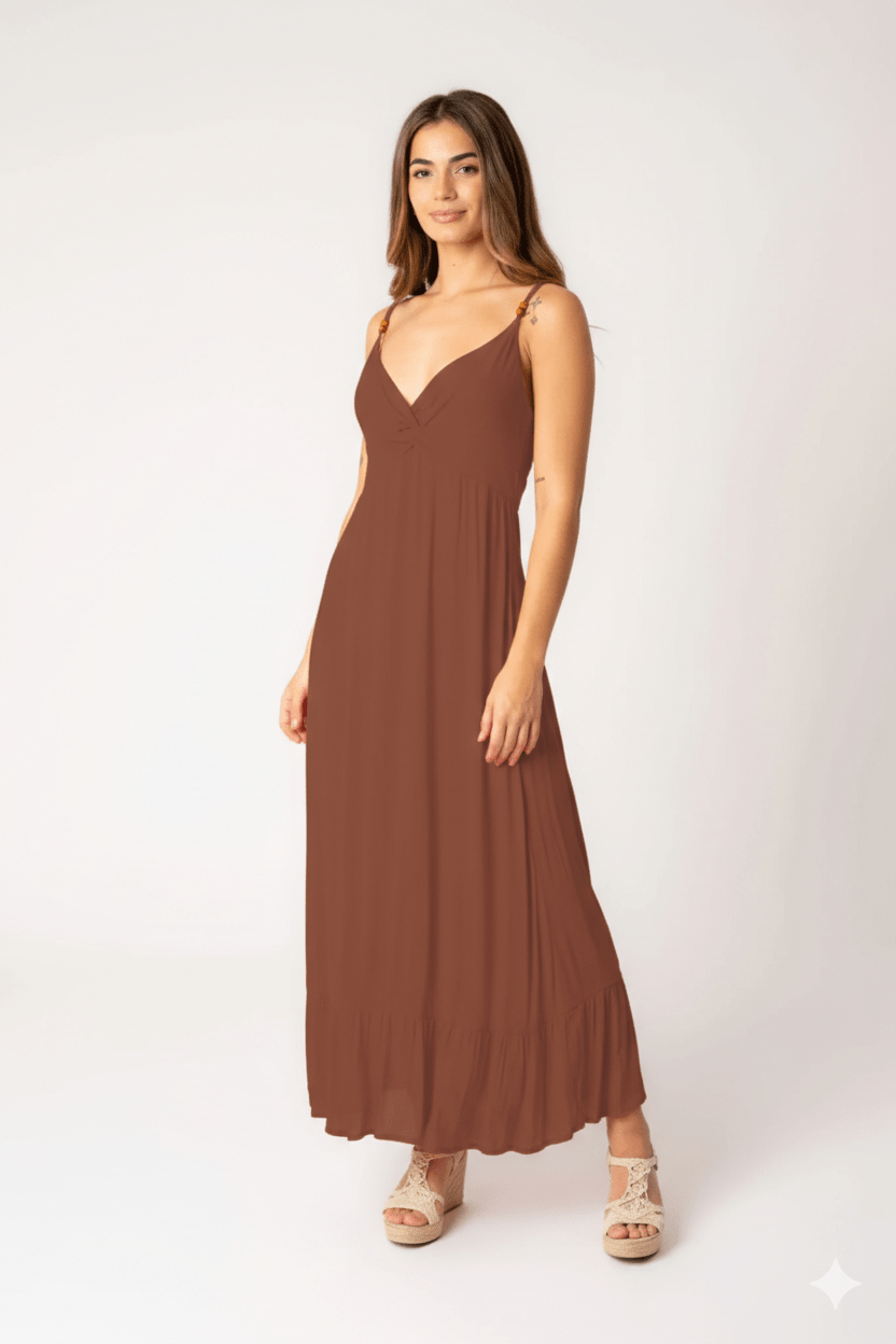 El Vestido Largo Mica Chocolate redefine la elegancia con su silueta impecable y un movimiento que cautiva. Confeccionado en viscosa crepé premium, este vestido fluido se distingue por una caída excepcional, realzando la figura femenina con una sofisticación etérea que complementa cualquier estilo.