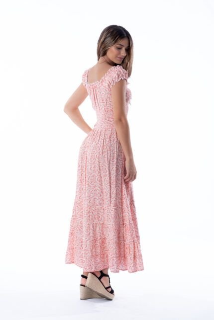 Vestido Largo June Coral Dot
